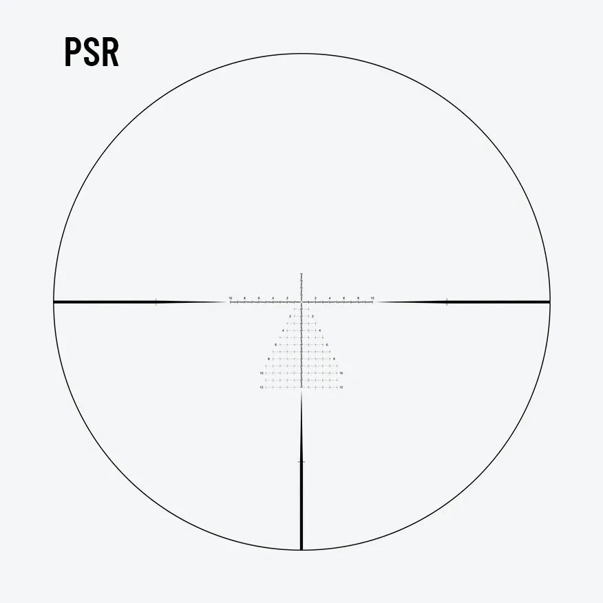 The PSR reticle is designed for serious long-range shooters, featuring crisp windage and elevation markings. Its precise hash marks and holdover points enable quick adjustments, delivering exceptional accuracy and confidence at every distance.