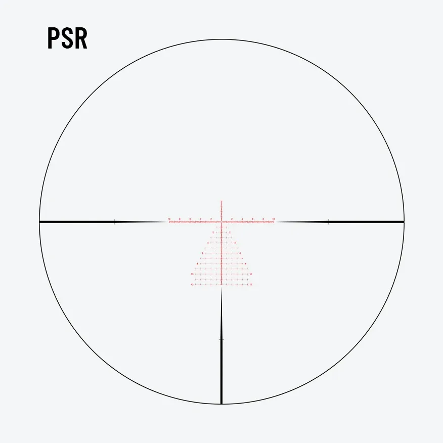 The PSR reticle is designed for serious long-range shooters, featuring crisp windage and elevation markings. Its precise hash marks and holdover points enable quick adjustments, delivering exceptional accuracy and confidence at every distance.