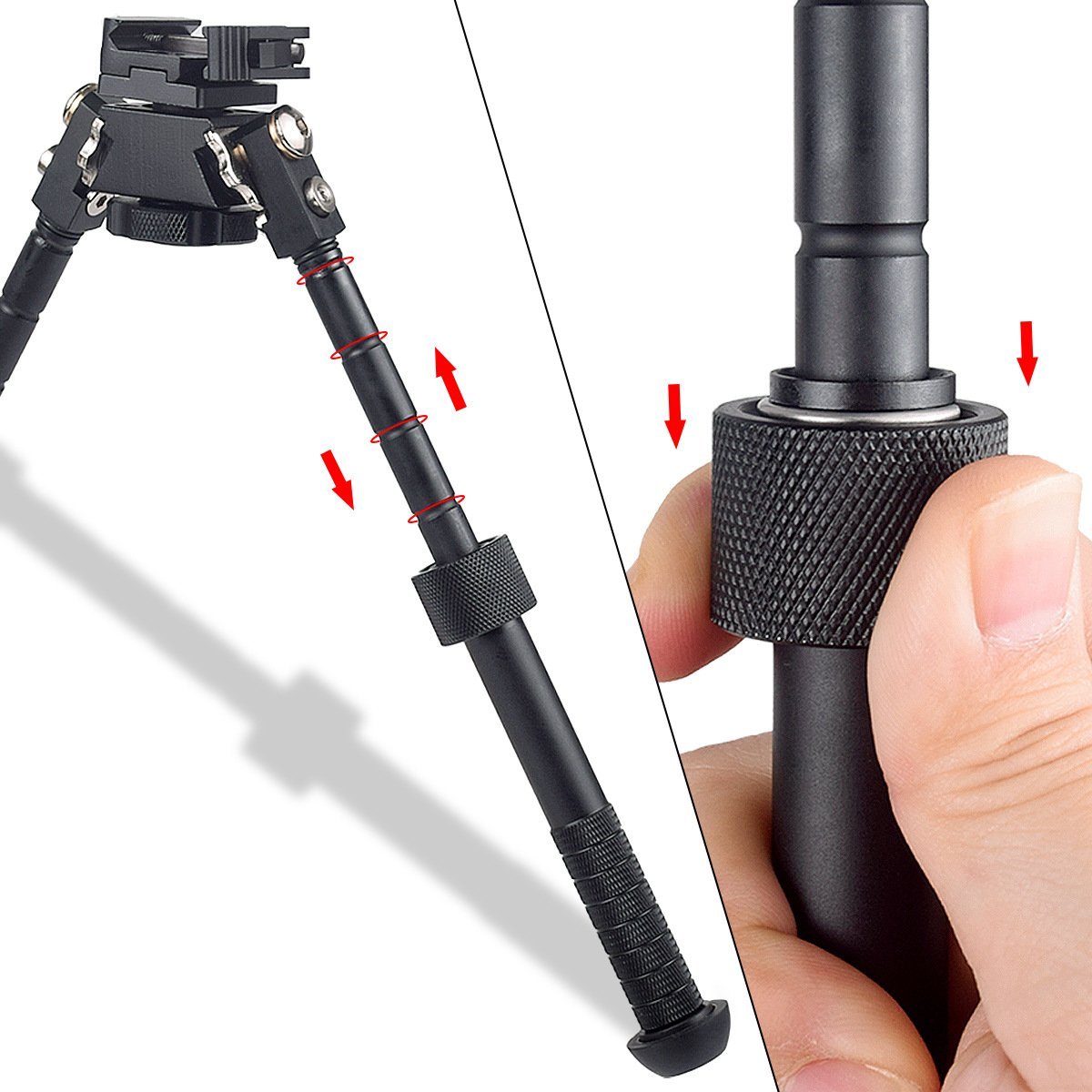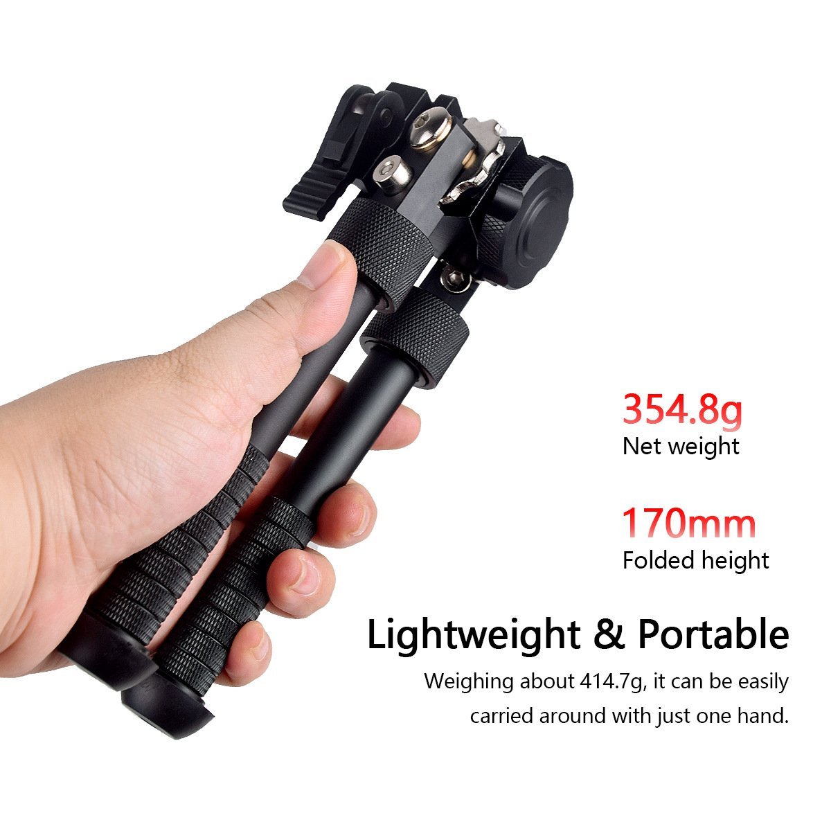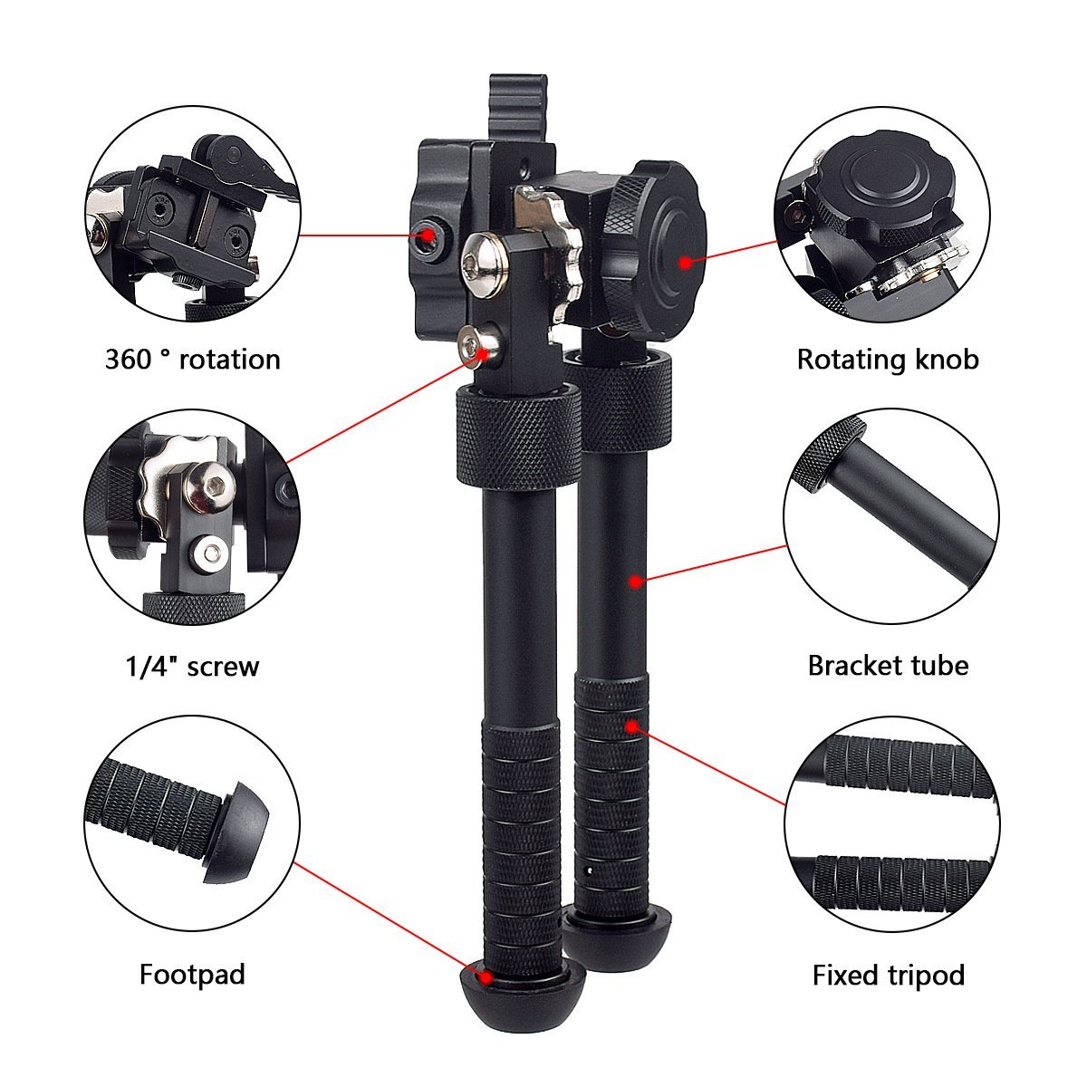Stable, fast, and built for the field. This adjustable tactical bipod features 360° swivel, folding legs with height adjustment, and direct Picatinny / Weaver rail attachment — everything you need for precision shooting without the premium price tag.